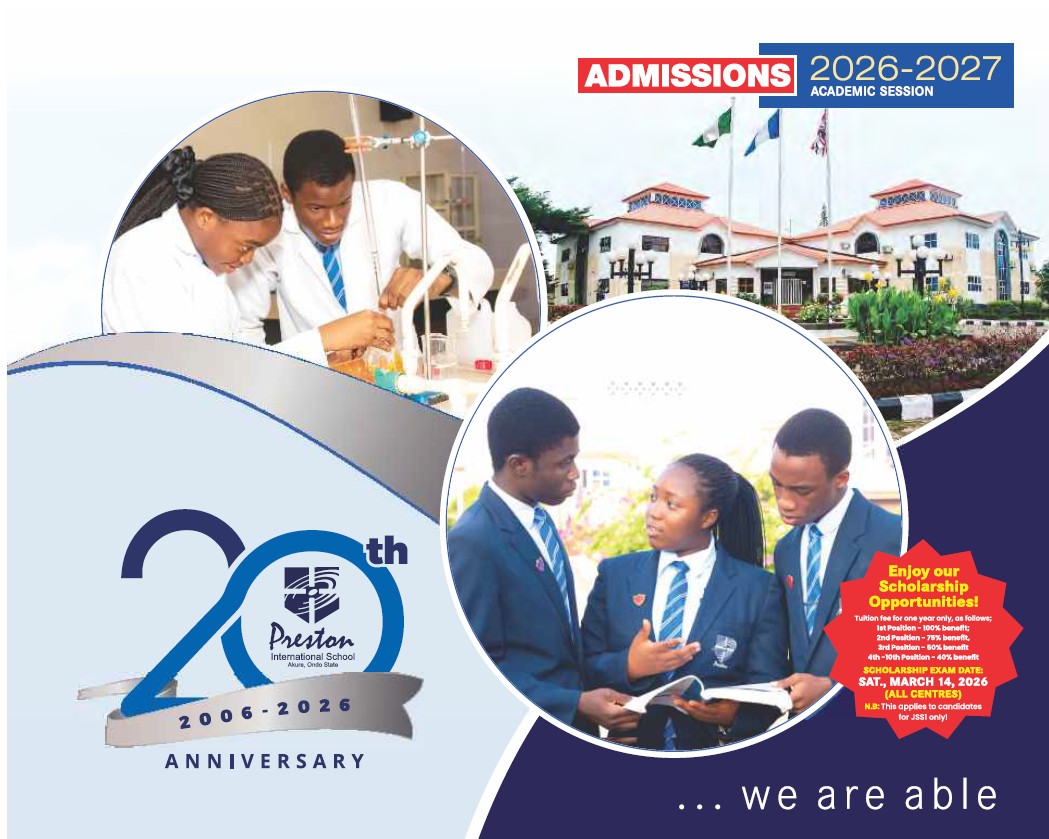 We are pleased to open up our admissions process for the twenty-first academic session at Preston International School which will commence on Saturday 12th September, 2026. Thanks to all our prospective parents for choosing Preston International School as your child's alma mater. This year, we are again offering both online and physical in-person options for the entrance examinations.
